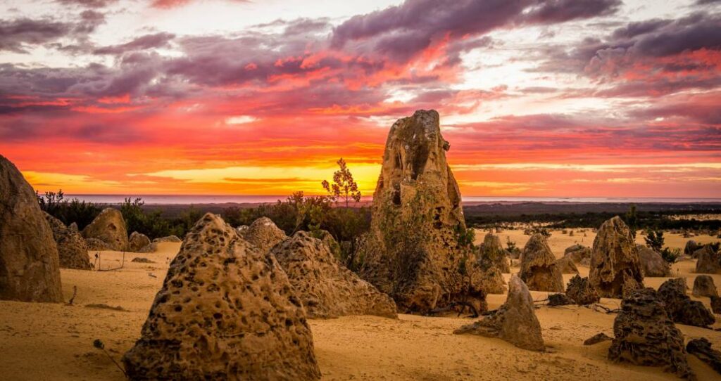 Roughly 190 km into your journey from Perth, you’ll reach The Pinnacles. Stop to see these 30,000 year old limestone spires for yourself, the formations sit within the desert at the Nambung National Park.